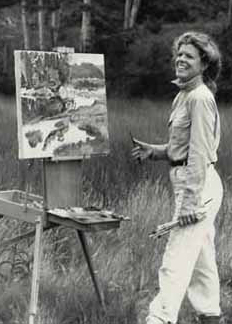 Living in New York City, her career blossomed. As a Woodrow Wilson scholarship recipient followed by a National Endowment for the Arts grant, she was able to reduce her work as a fine art appraiser and spend a greater amount of time painting. She acquired a second home and studio in Millbrook, NY, which allowed her the chance to translate her love of the land into broad statements of that love through her artistry. Many exhibitions followed her development as a painter. Her work resides in numerous museums and private collections around the country.
